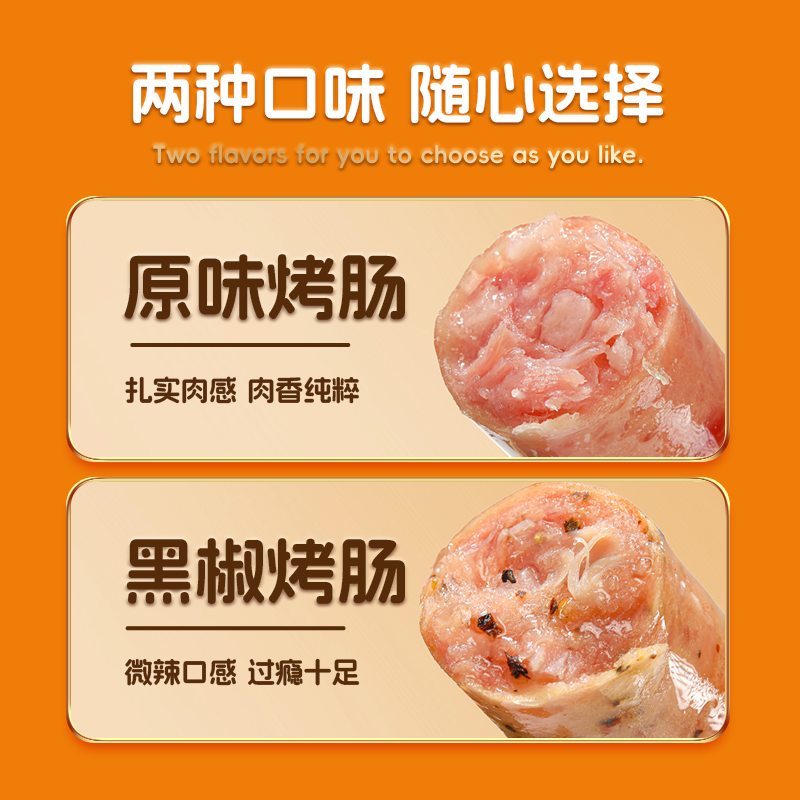 火山石脆皮烤肠香肠热狗地道肉肠原味黑胡椒空气炸锅食材700g