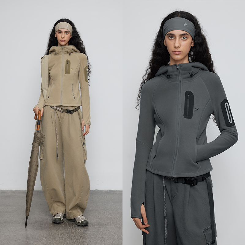 2025秋季 运动 连帽修身 长袖 外套女 摇粒绒 短款 半圆原创设计女装