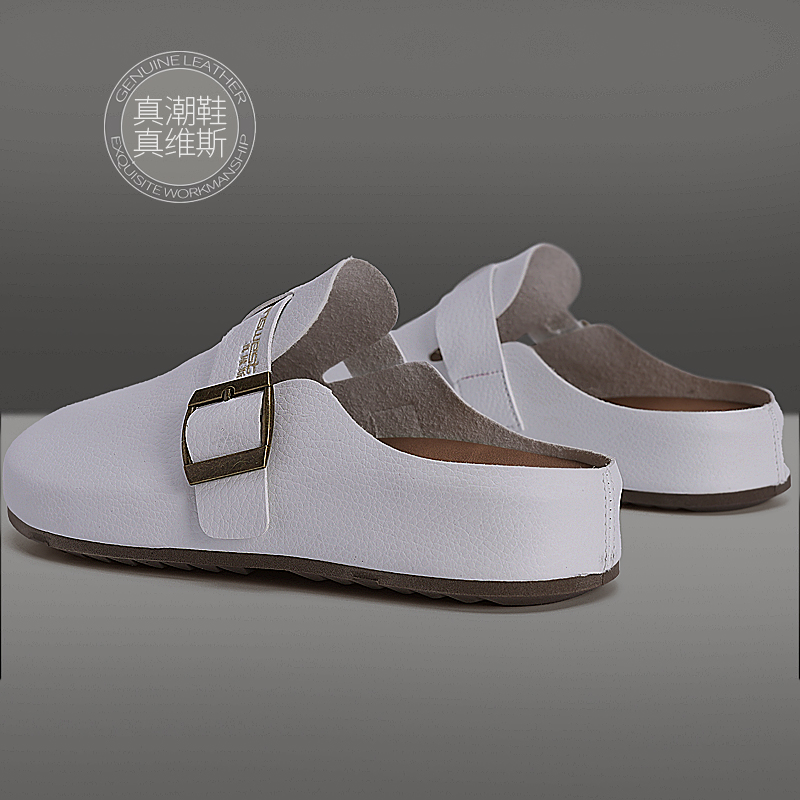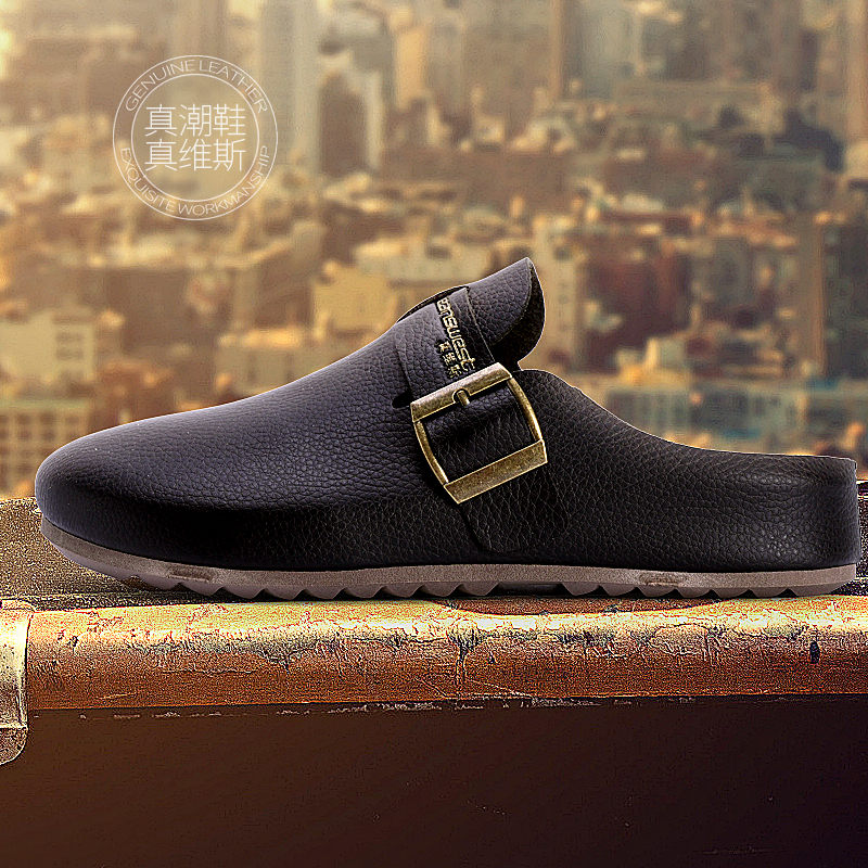 一脚蹬防滑百搭包头半拖鞋 真维斯英伦风情侣款 休闲软皮软底勃肯鞋