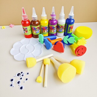 蘑菇头海绵刷绘画拓印工具幼儿园涂鸦eva水彩颜料套装 美术印章
