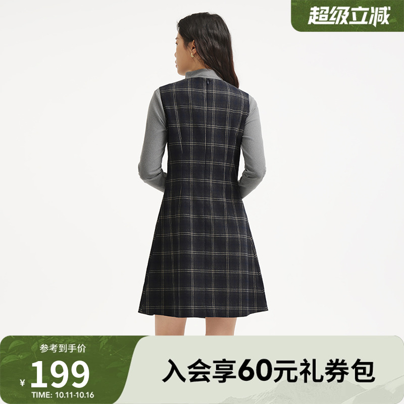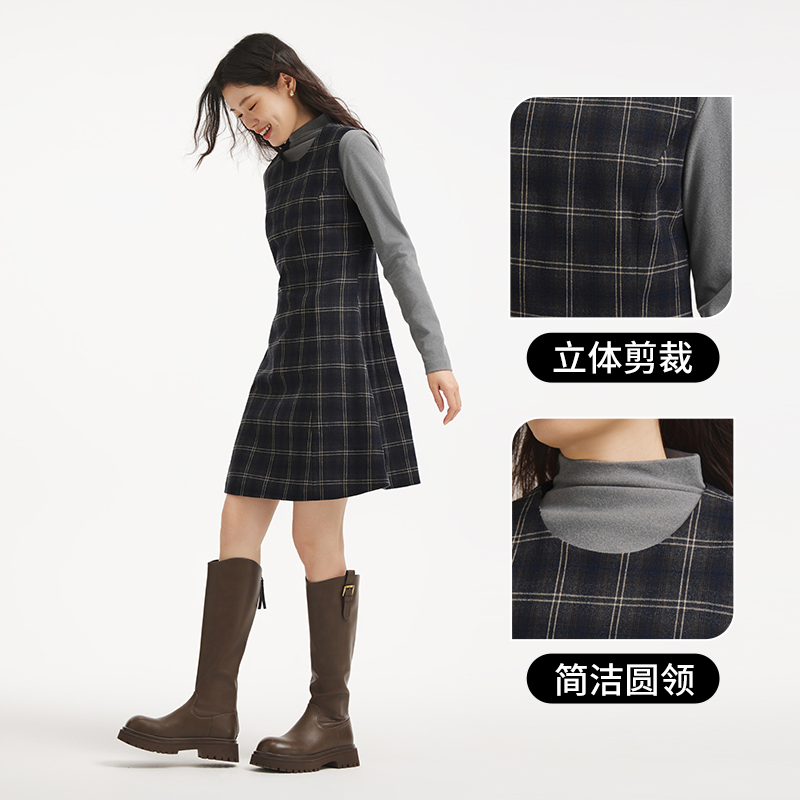 格纹收腰连衣裙正肩版 女士经典 型利落线条 新款 热风2025年冬季