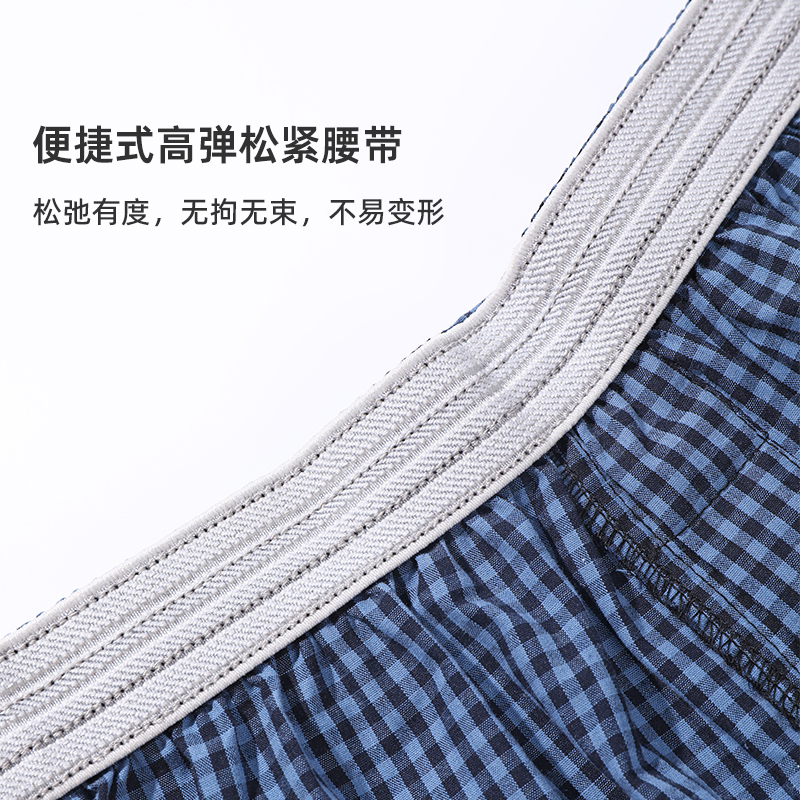 内裤 阿罗裤 夏季 透气男宽松睡裤 新疆棉 3条装 平角裤 格子纯棉男士
