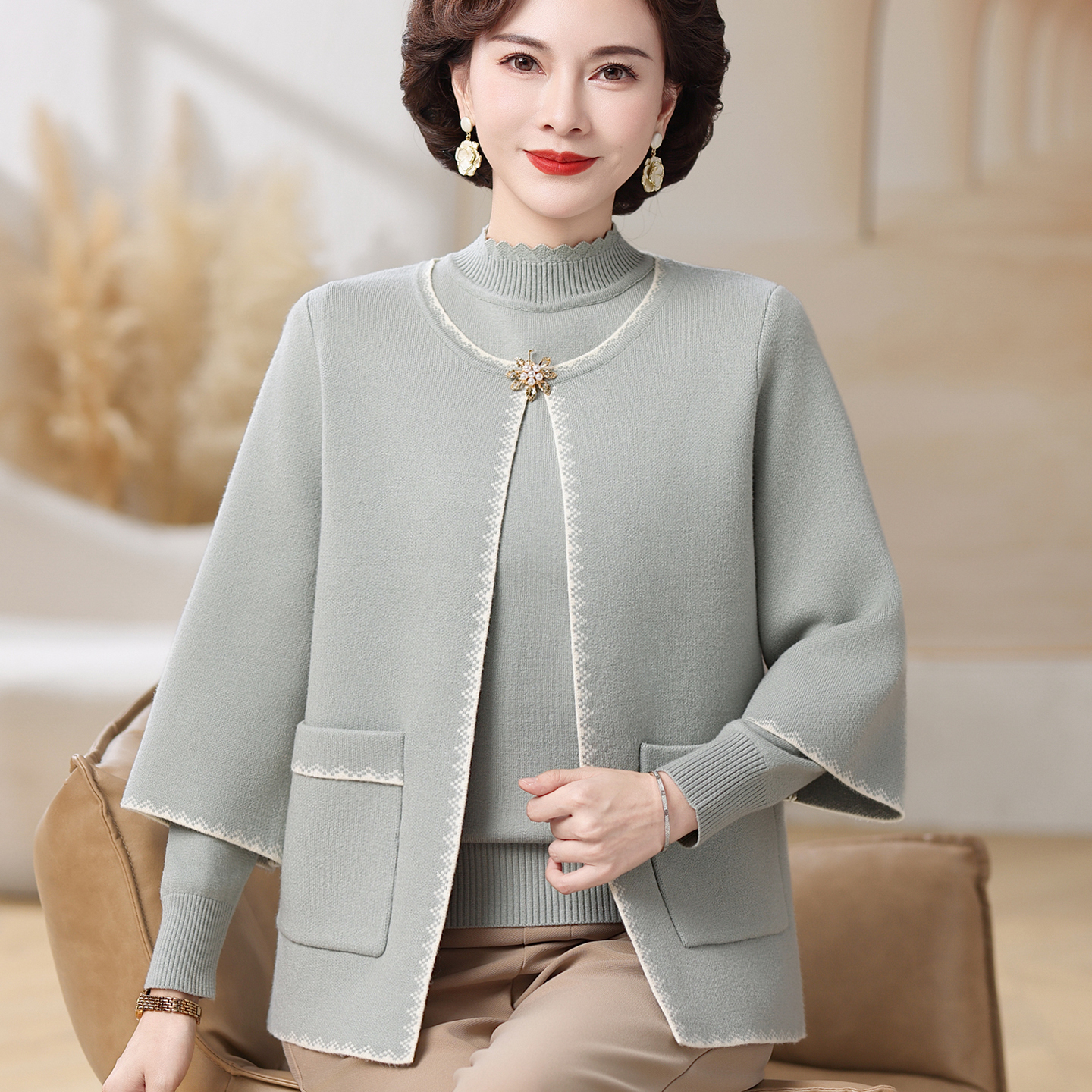女两件套2025年春秋新款 套装 上衣大码 开衫 洋气妈妈装 中老年针织衫