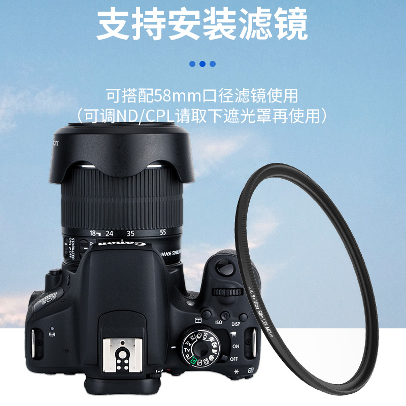 50mm镜头EF 适用佳能EW 800D 850D黑白色58滤镜 JJC 750D 63C遮光罩RF 200D二代 STM套装 90D