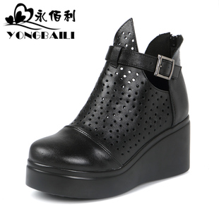 时尚 皮鞋 牛皮女鞋 镂空透气休闲高跟舒适厚底单鞋 高帮鞋 2025春新款