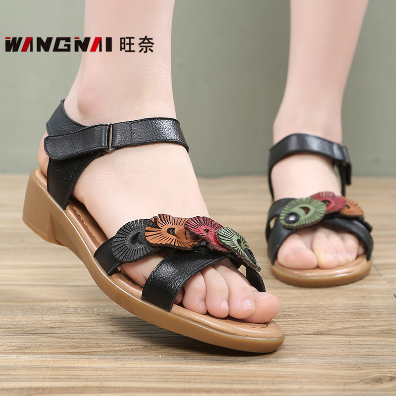 平底大码 真皮软底中老年女鞋 老人凉鞋 断码 女清仓 旺奈妈妈鞋 鞋 夏季