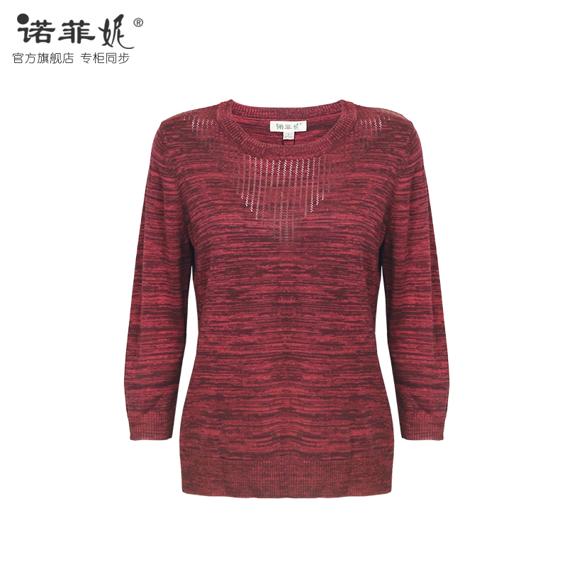 深红桑蚕丝套头针织衫 中年女装 中袖 新款 百搭妈妈春秋上衣 2025秋装