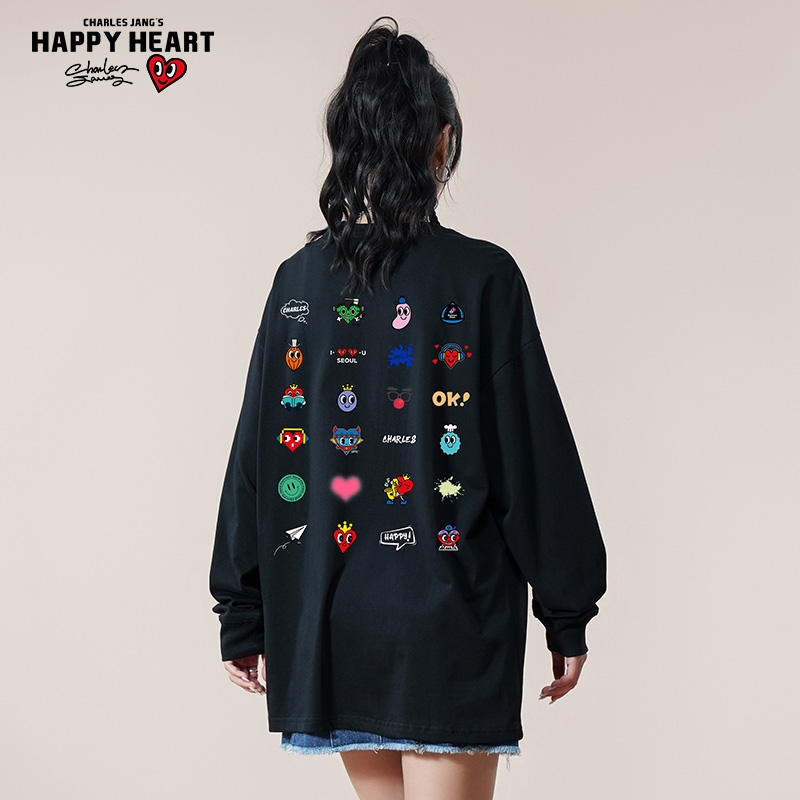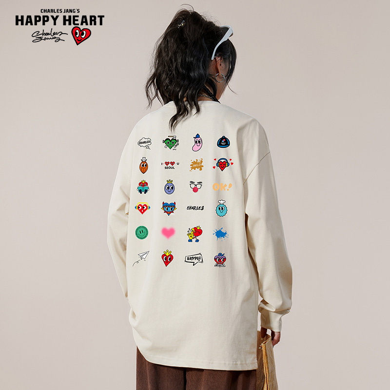 t恤男纯棉情侣卡通印花宽松圆领卫衣 长袖 查尔斯桃心 2025年春季