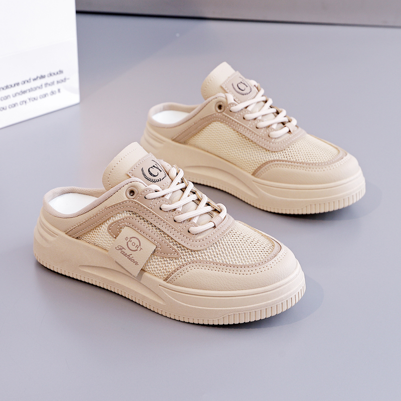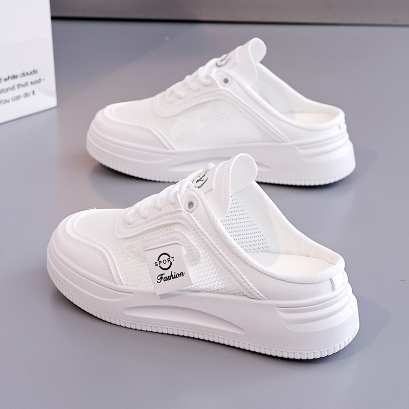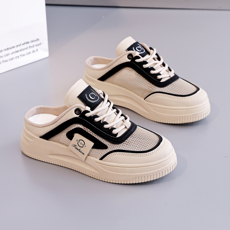 包头厚底网面凉拖鞋 2025夏季 外穿懒人爆款 百搭半拖小白女鞋 子 新款