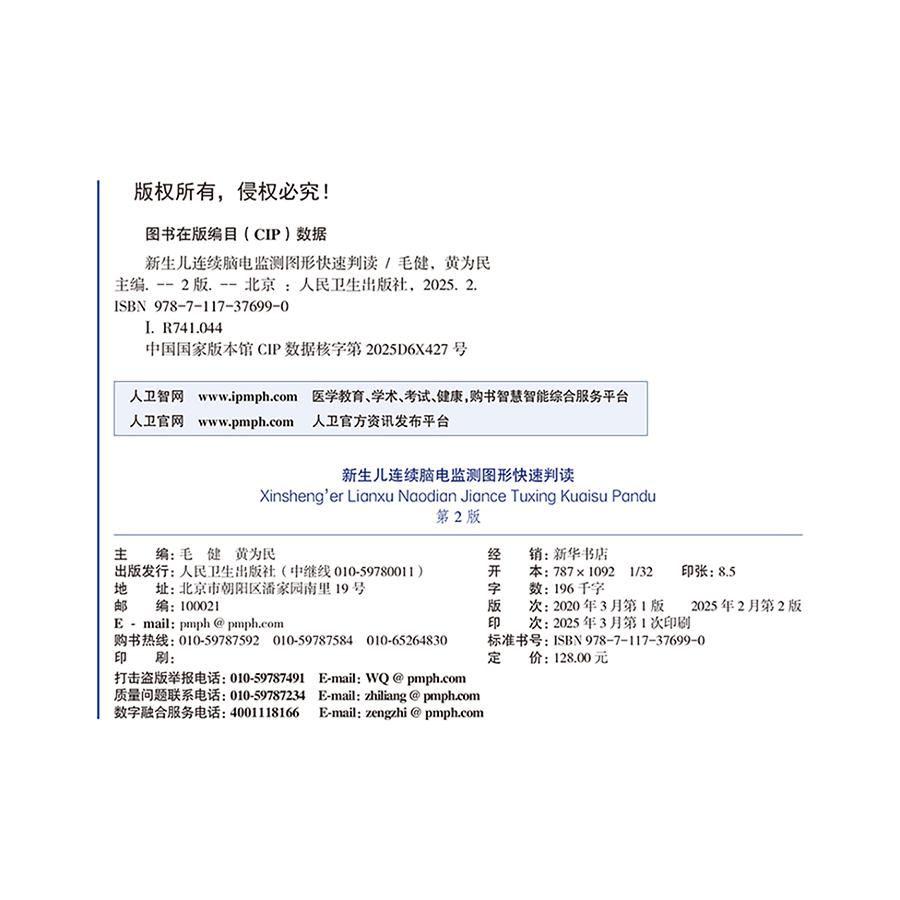 毛健 黄为民 主编 新生儿连续脑电监测图形快速判读 社 配增值 人民卫生出版 9787117376990 第2版
