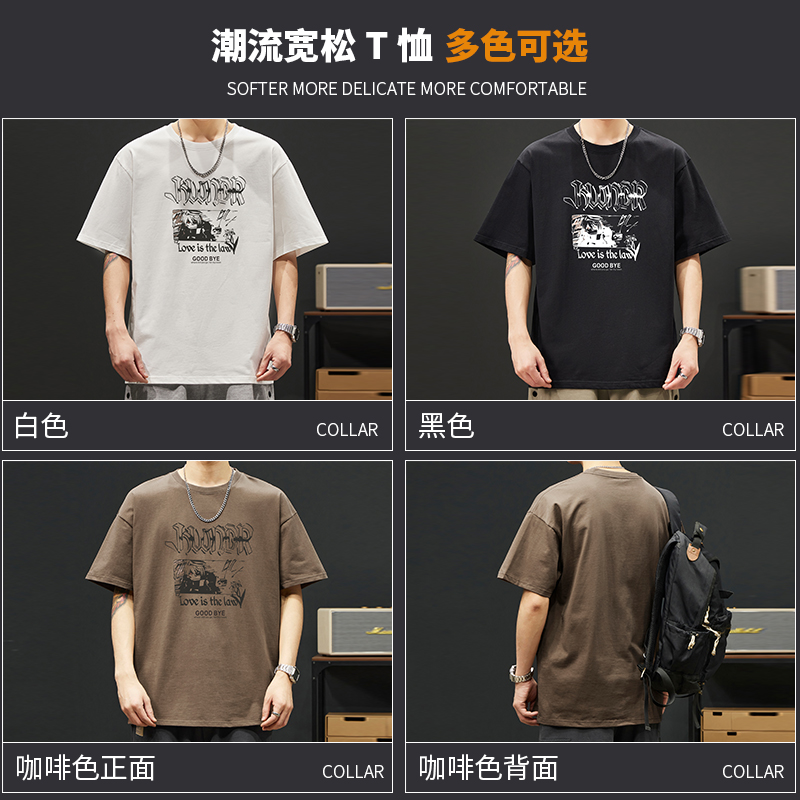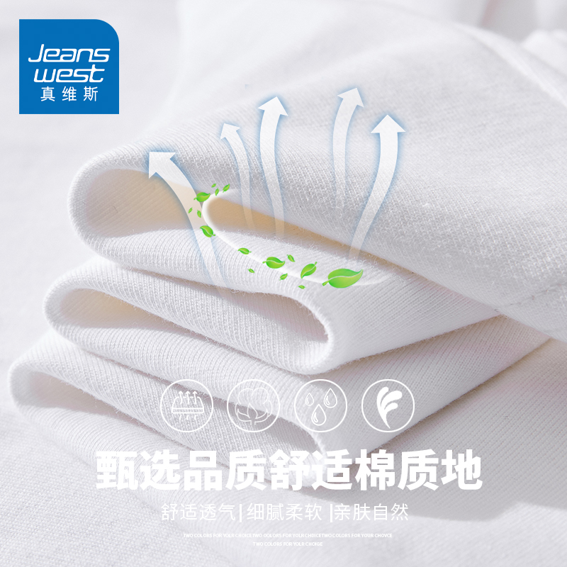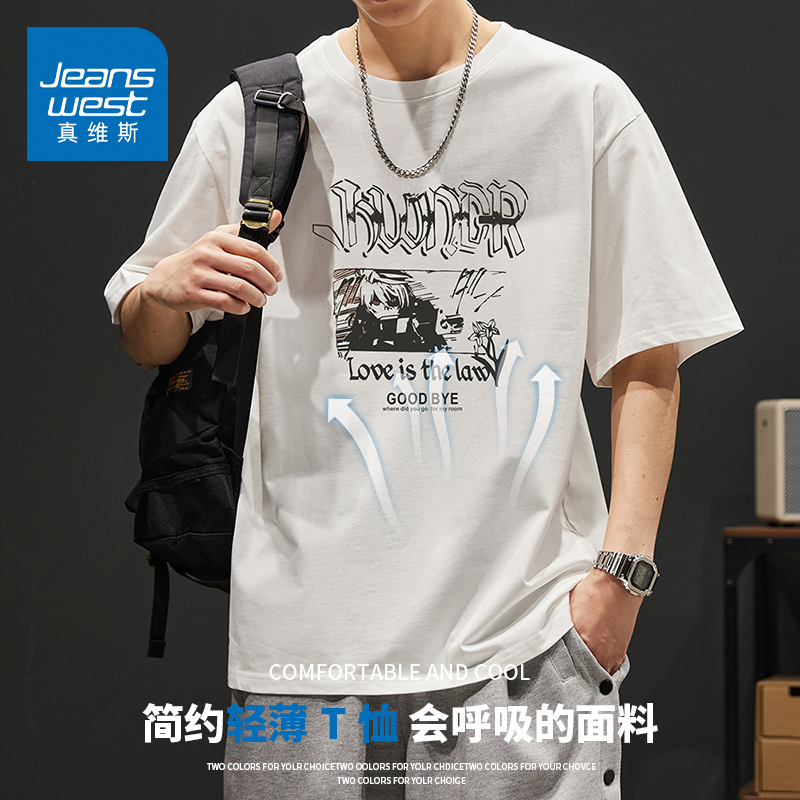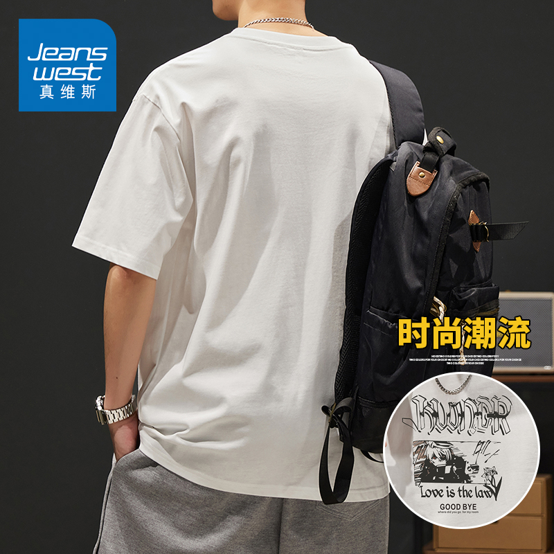 宽松百搭打底衫 薄款 潮牌印花上衣 T恤男夏季 KZH真维斯白色纯棉短袖