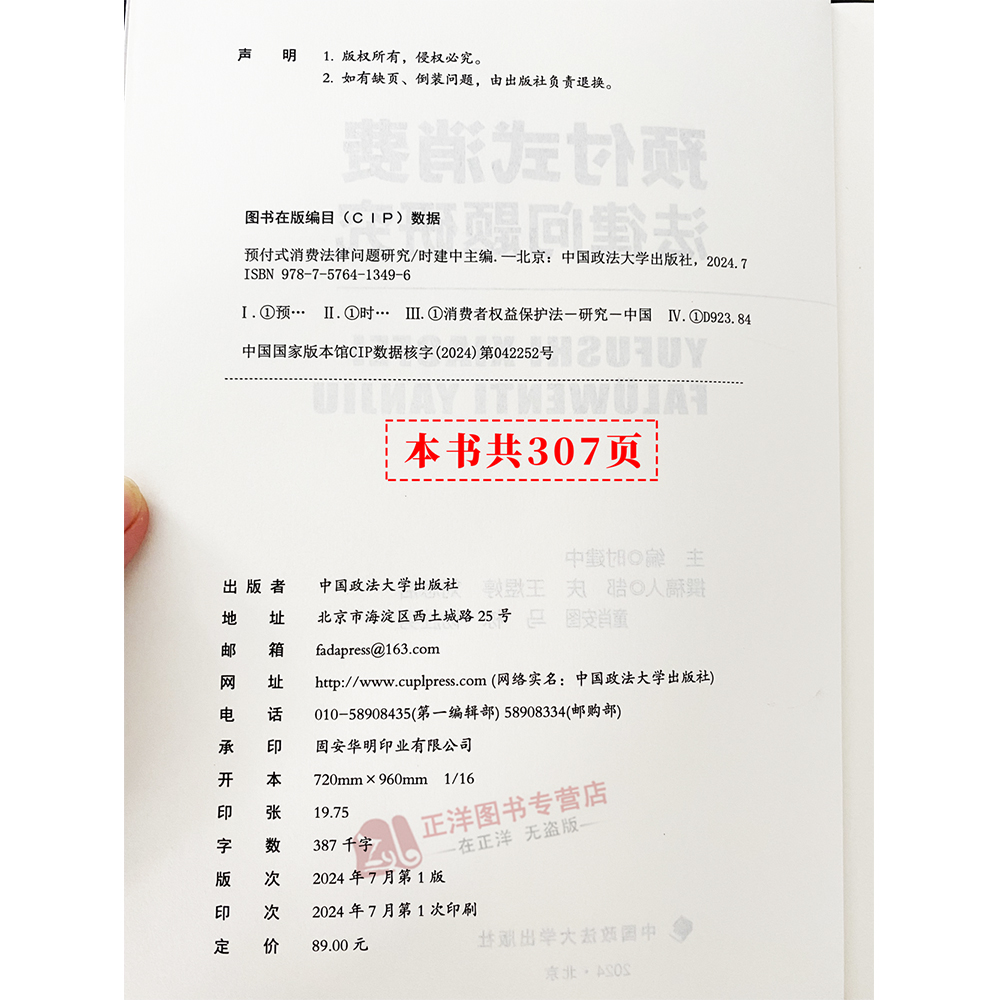 2024新书 中国政法大学出版 预付式 时建中 社9787576413496 消费法律问题研究 正版