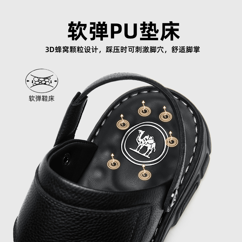 男士 舒适软底真皮透气耐磨凉拖两穿商务休闲凉鞋 新款 骆驼2025夏季