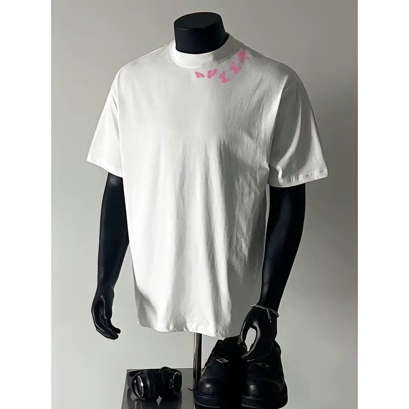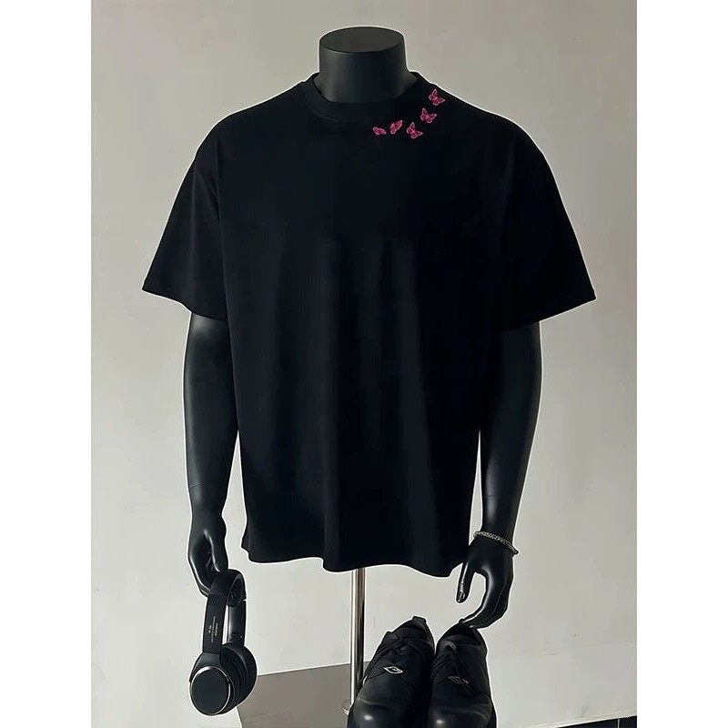 小领口情侣半截袖 320g重磅美式 纯棉美式 t恤夏季 复古蝴蝶印花短袖