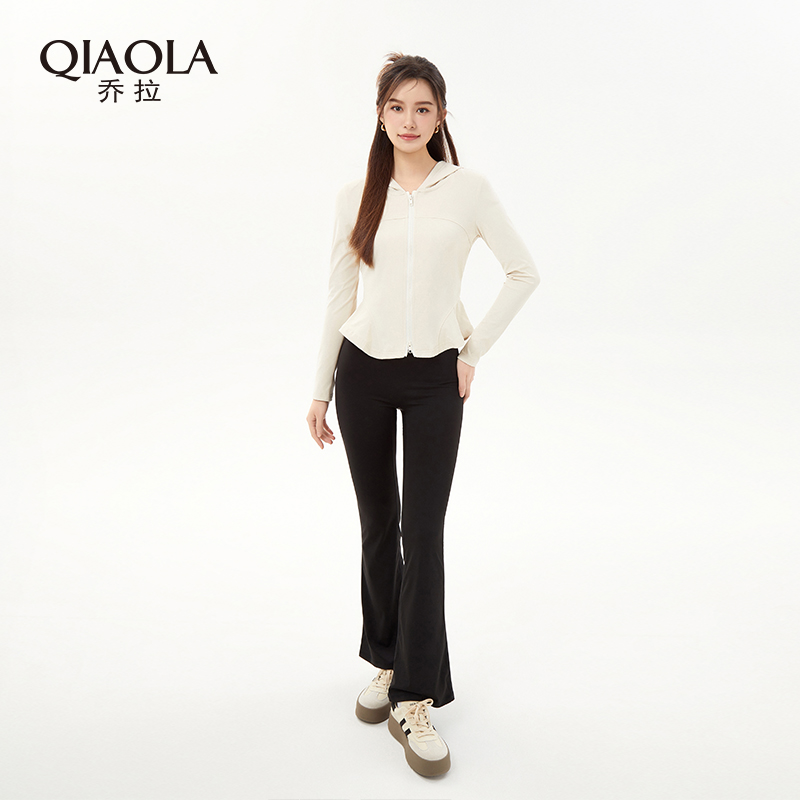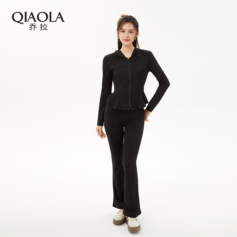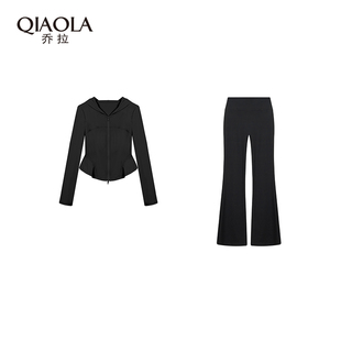 喇叭长裤 乔拉 套装 设计感黑色收腰连帽外套上衣女时尚 自在之姿