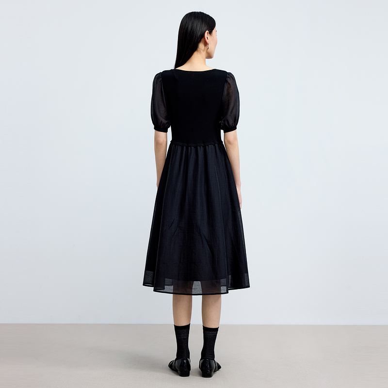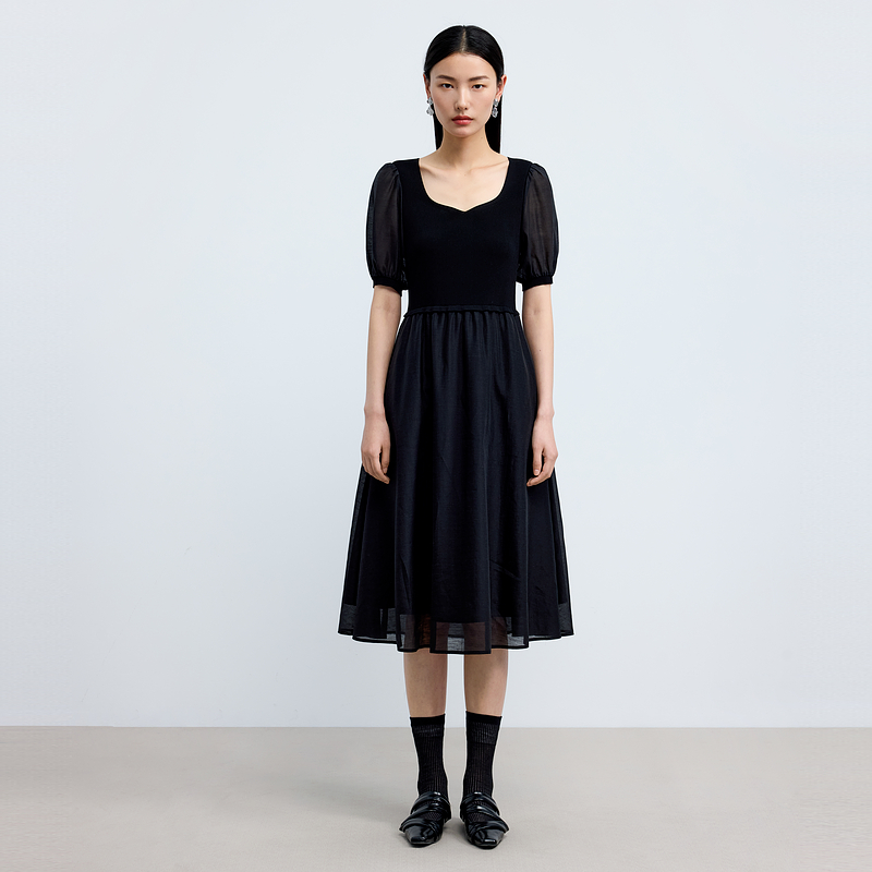 COCOBELLA赫本风针织拼接连衣裙小黑裙女秋优雅大摆长裙FR0008