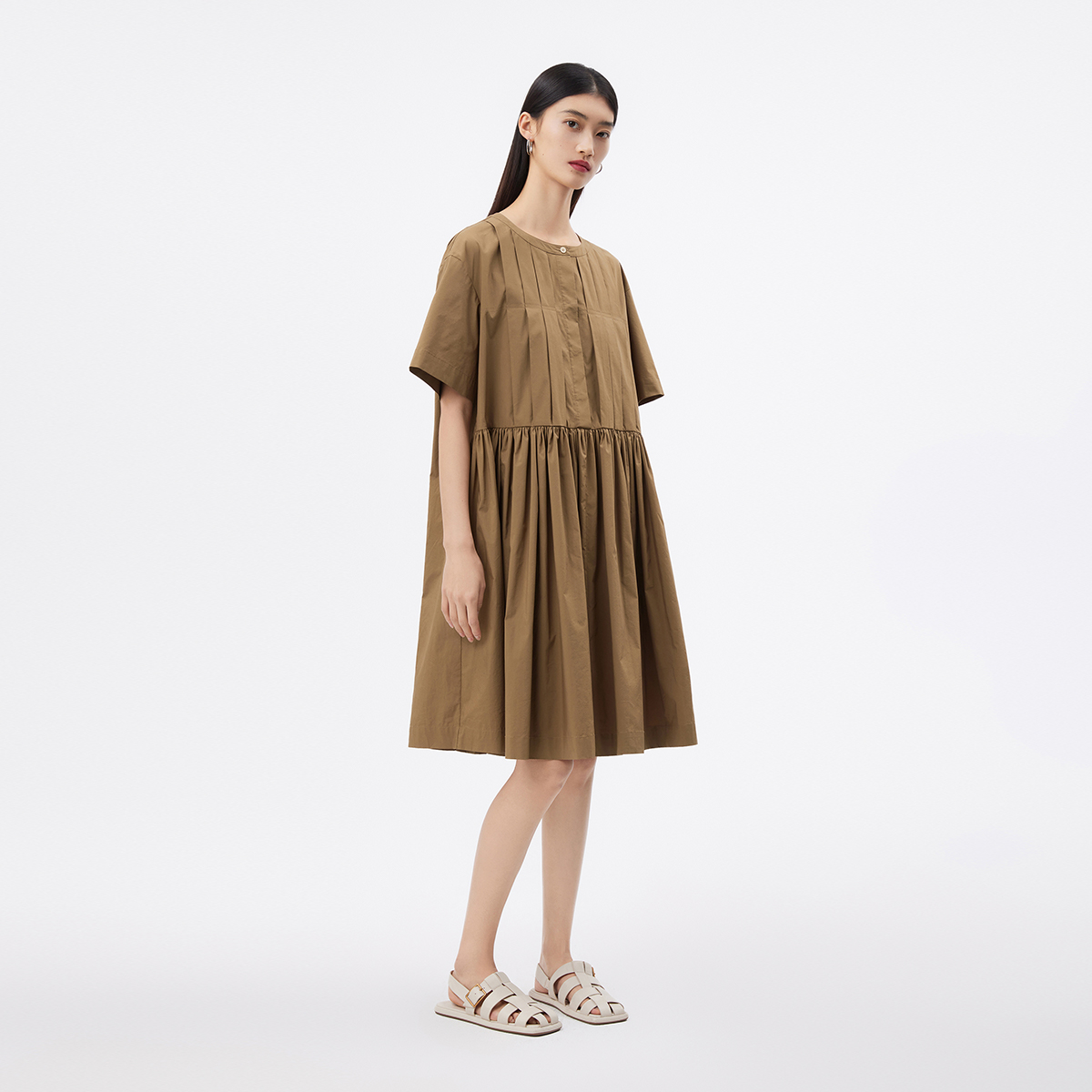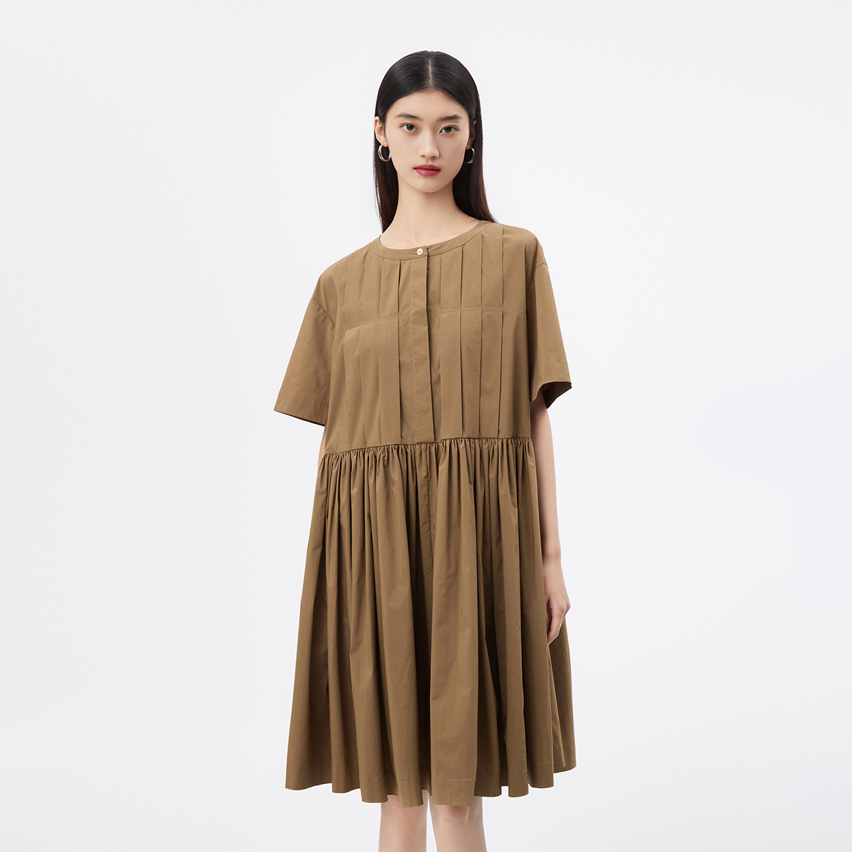 褶皱圆领气质可露丽裙子DDS2LD5909 新款 播优雅短袖 连衣裙女25夏季