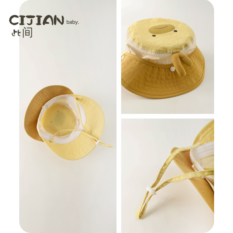 儿童渔夫帽春夏季 速干盆帽可拆卸护颈太阳帽宝宝男女童防晒遮阳帽
