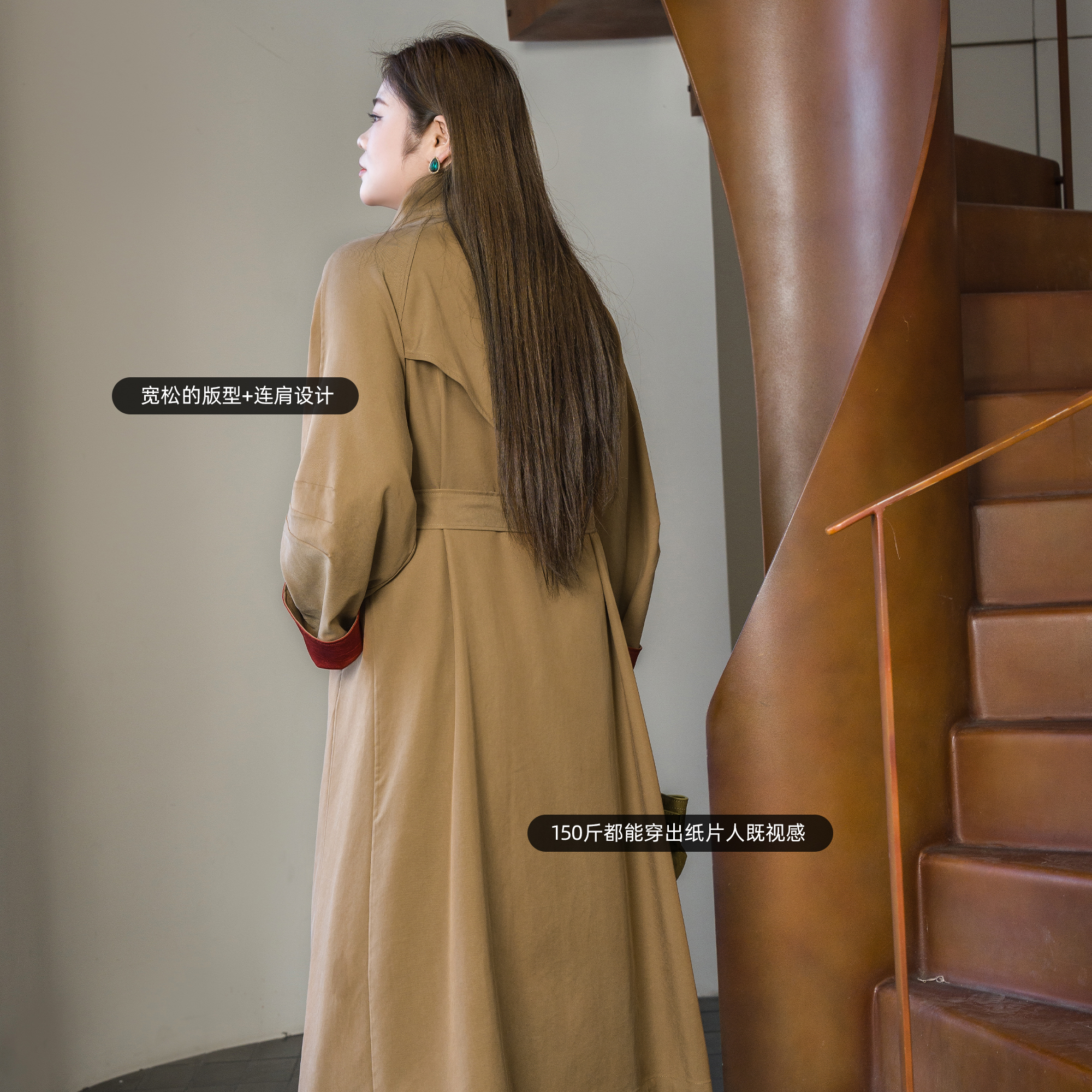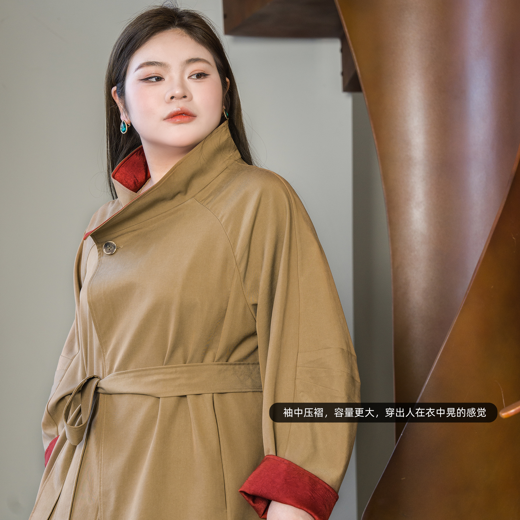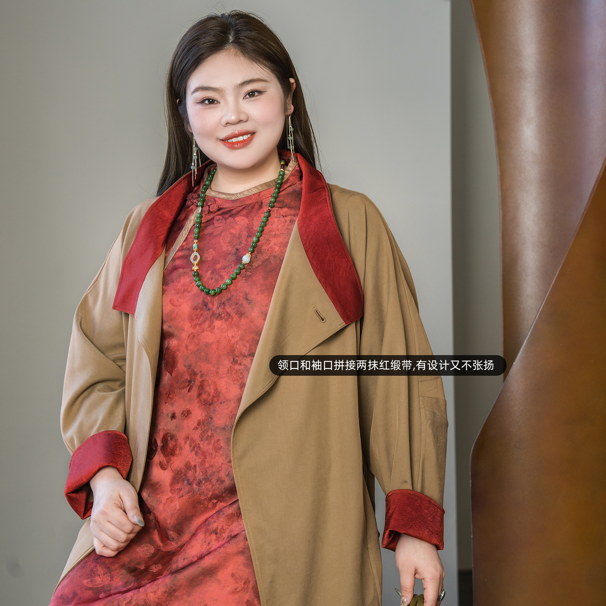 美丽客栈原创高端大码 胖mm200斤加肥加大宽松撞色风衣外套 女装