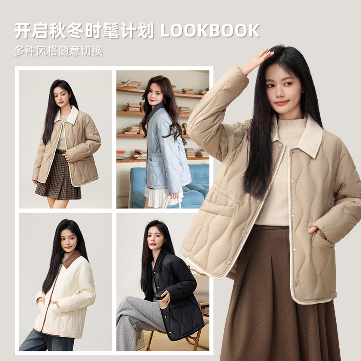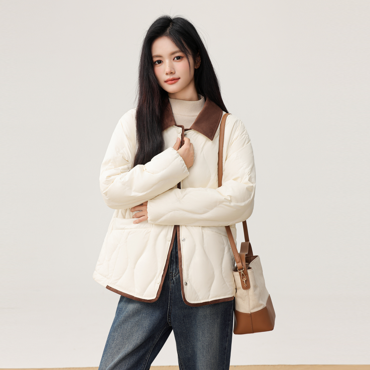 雪中飞2025冬新款 女短可拆翻领葫芦纹轻薄秋羽绒服温柔百搭小个子
