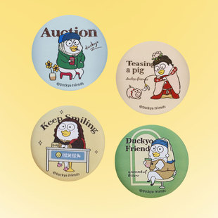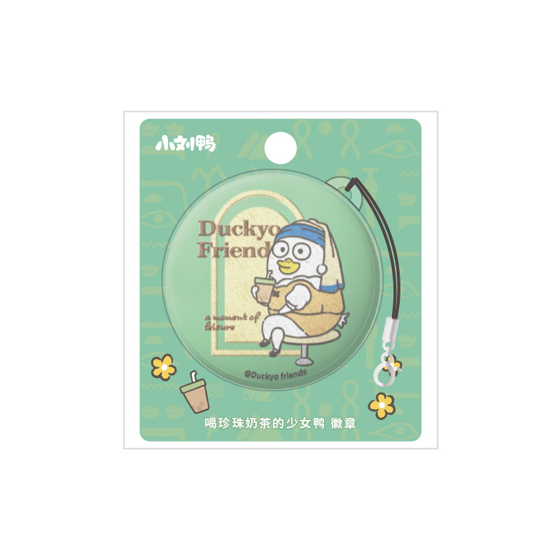 屈臣氏小刘鸭喝珍珠奶茶 少女鸭徽章微笑服务鸭向日葵鸭