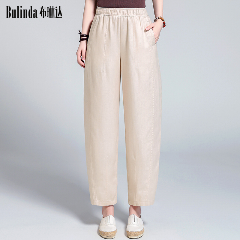 高腰休闲哈伦萝卜裤 布琳达夏季 女垂感显瘦薄款 天丝亚麻九分裤 新款