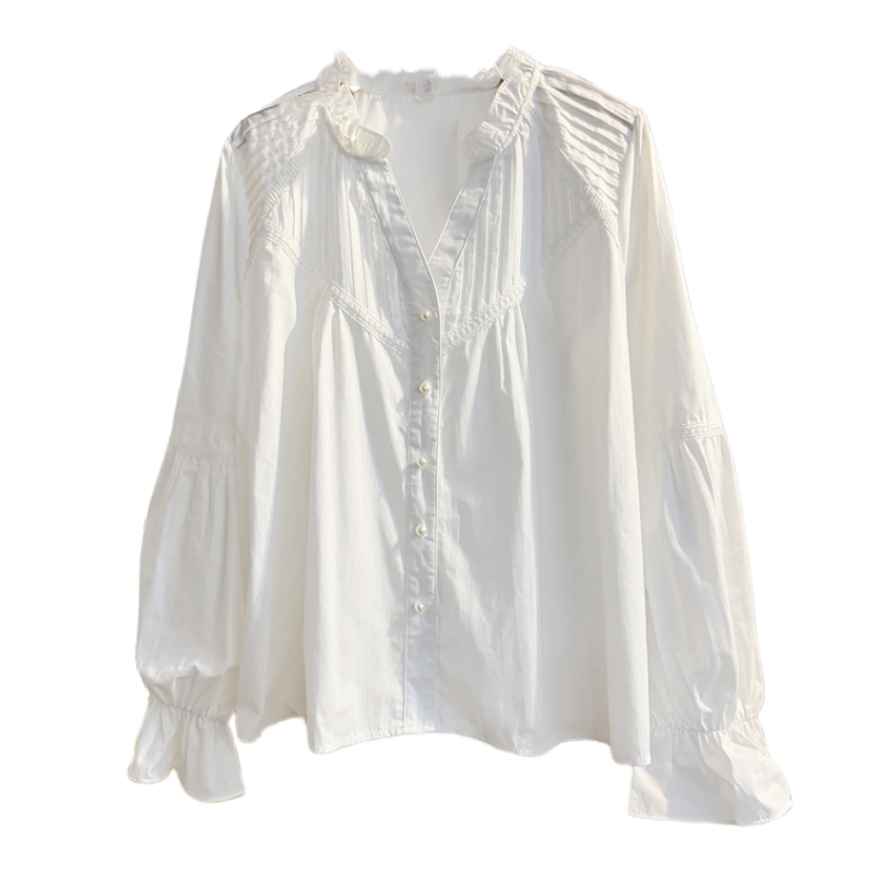 复古气质内搭叠穿衬衣小衫 女2025秋法式 衬衫 白色木耳花边立领长袖