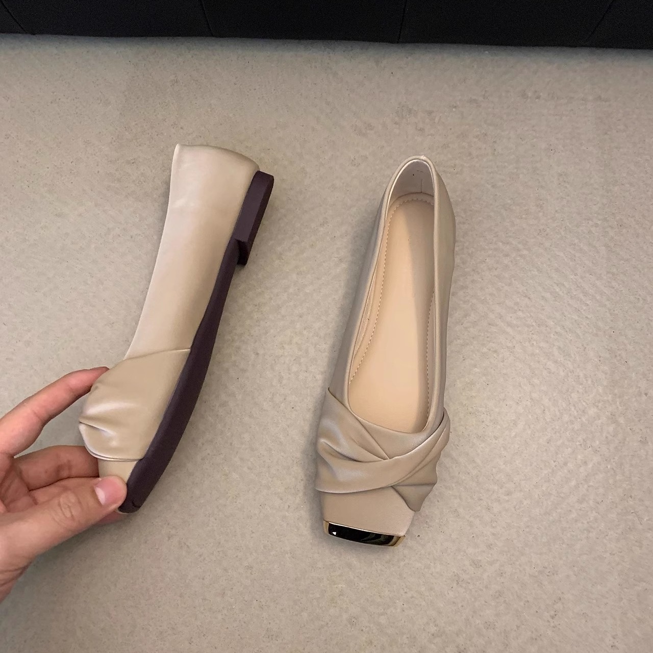 新款 女鞋 女士温柔蝴蝶结浅口单鞋 淑女平底单鞋 法式 热风2025年夏季