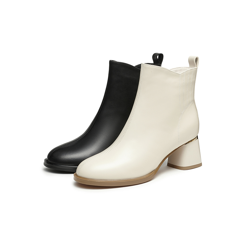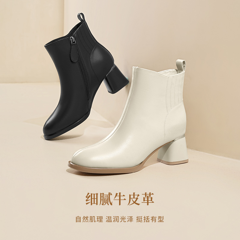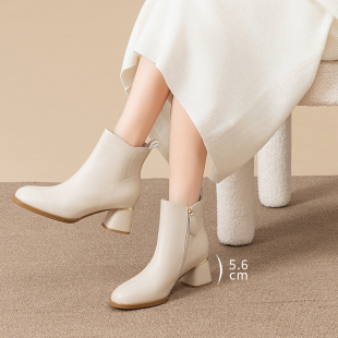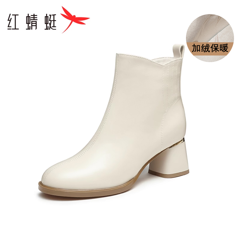 气质高跟鞋 皮鞋 子中年妈妈靴子 女鞋 红蜻蜓白色真皮短靴女秋冬新款