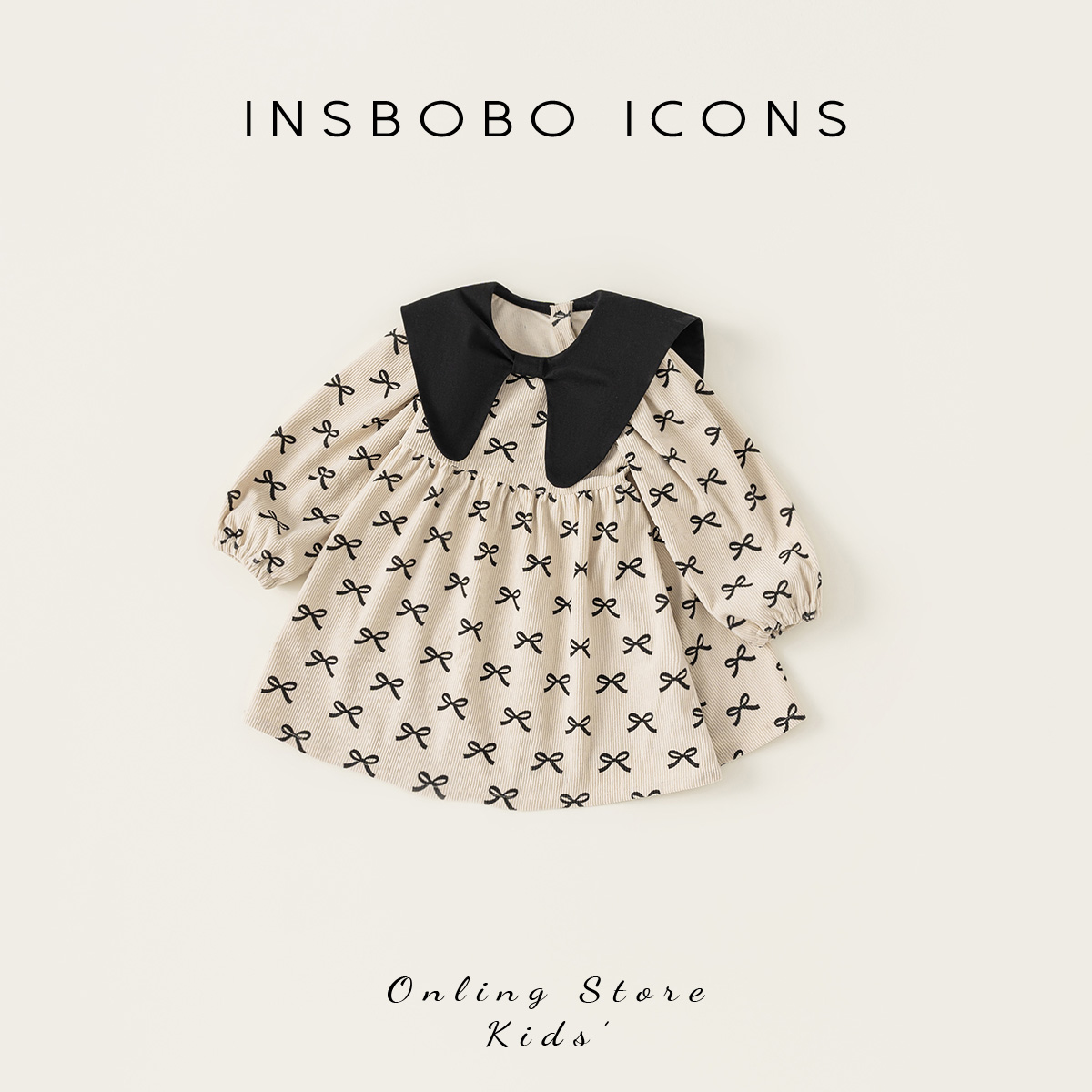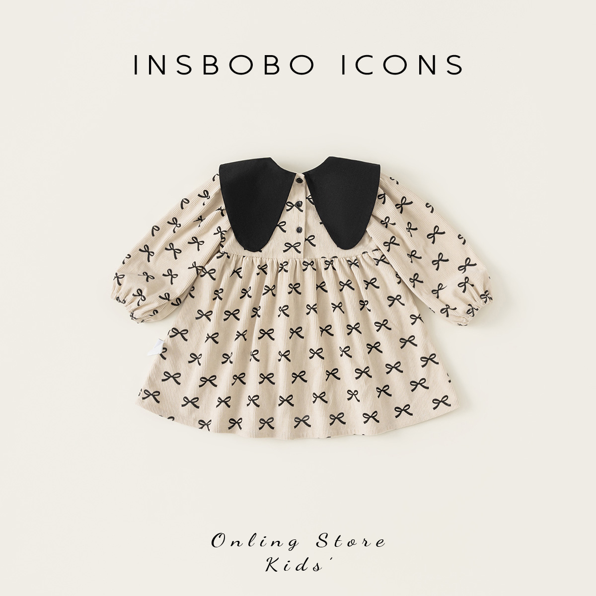 DPLAY2025秋季 蝴蝶结礼服小黑裙 黑色珍珠领丝绒连衣裙气质短款
