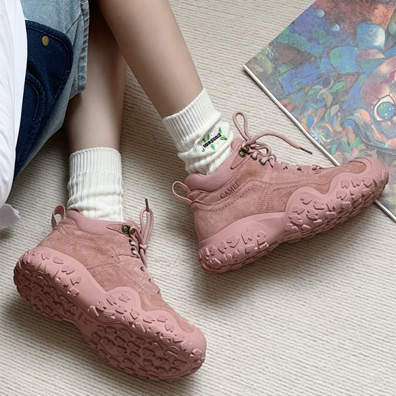 真皮厚底马丁靴女2025新款 秋棕色短靴复古户外徒步旅游登山沙漠靴