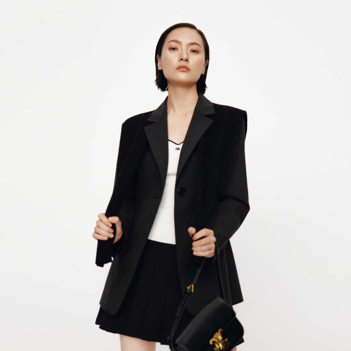 艾诺丝雅诗 女设计感外套秋30911353 气质优雅8.9%绵羊毛收腰西装