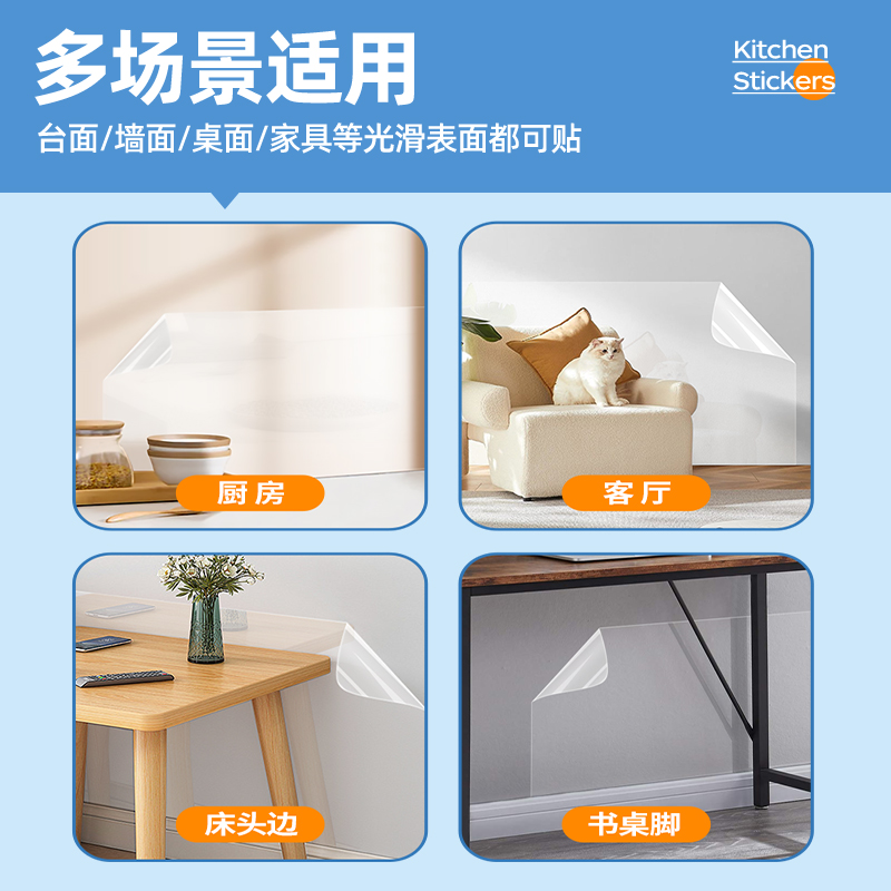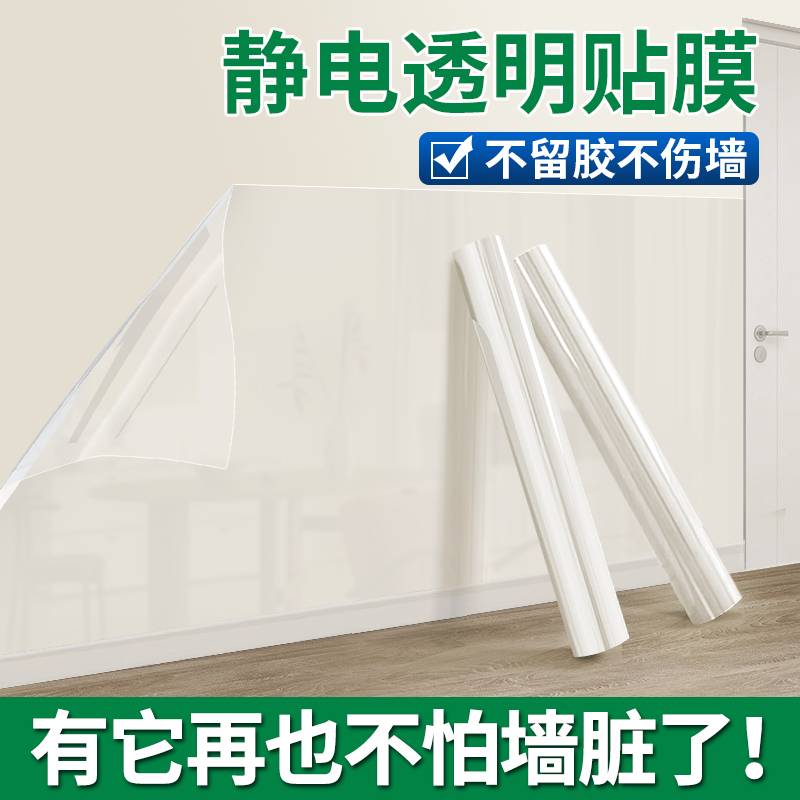 墙面保护膜静电贴纸乳胶漆白墙家用透明防脏防水墙贴厨房防油贴膜