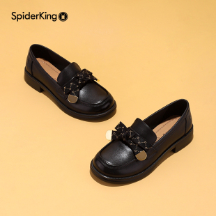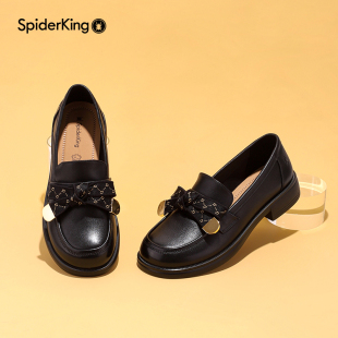 单鞋 蜘蛛王女鞋 厚底2025春秋新款 通勤黑色蝴蝶结小皮鞋 真皮乐福鞋