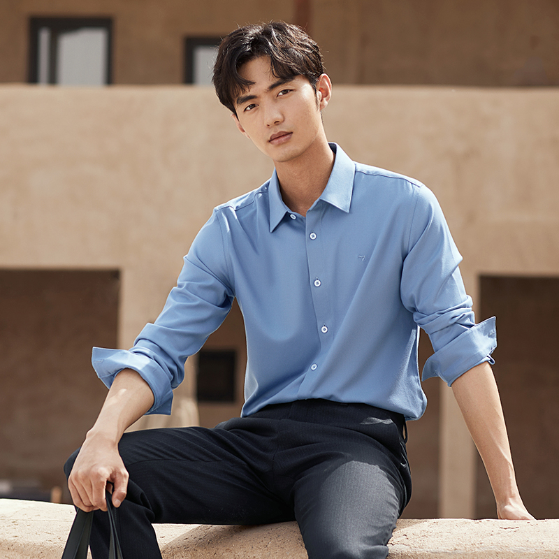 商务长袖 衬衫 秋季 结婚白衬衣正装 柒牌男装 青年男士 上衣 莫代尔