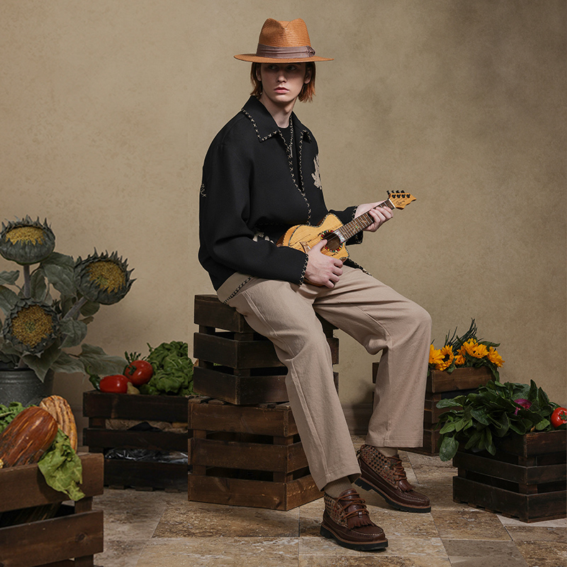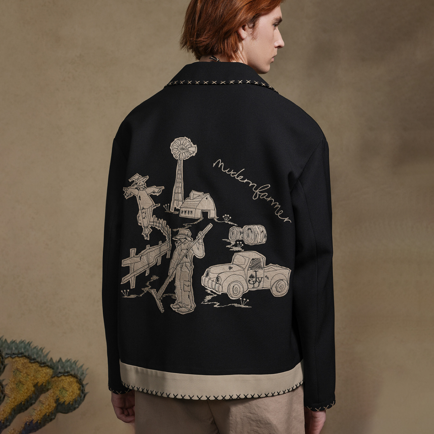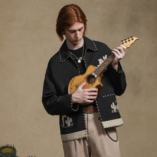 三福2025秋冬刺绣PU皮衣夹克宽松复古外套男507952 史努比联名