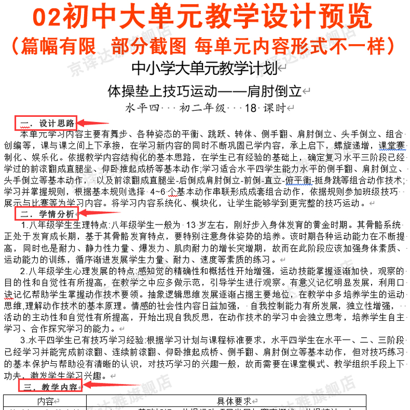 18课时教案教学计划电子版 教学设计足球篮球排球武术田径高中体育水平一二三四五大单元 小学初中体育与健康大单元 2025新课标人教版