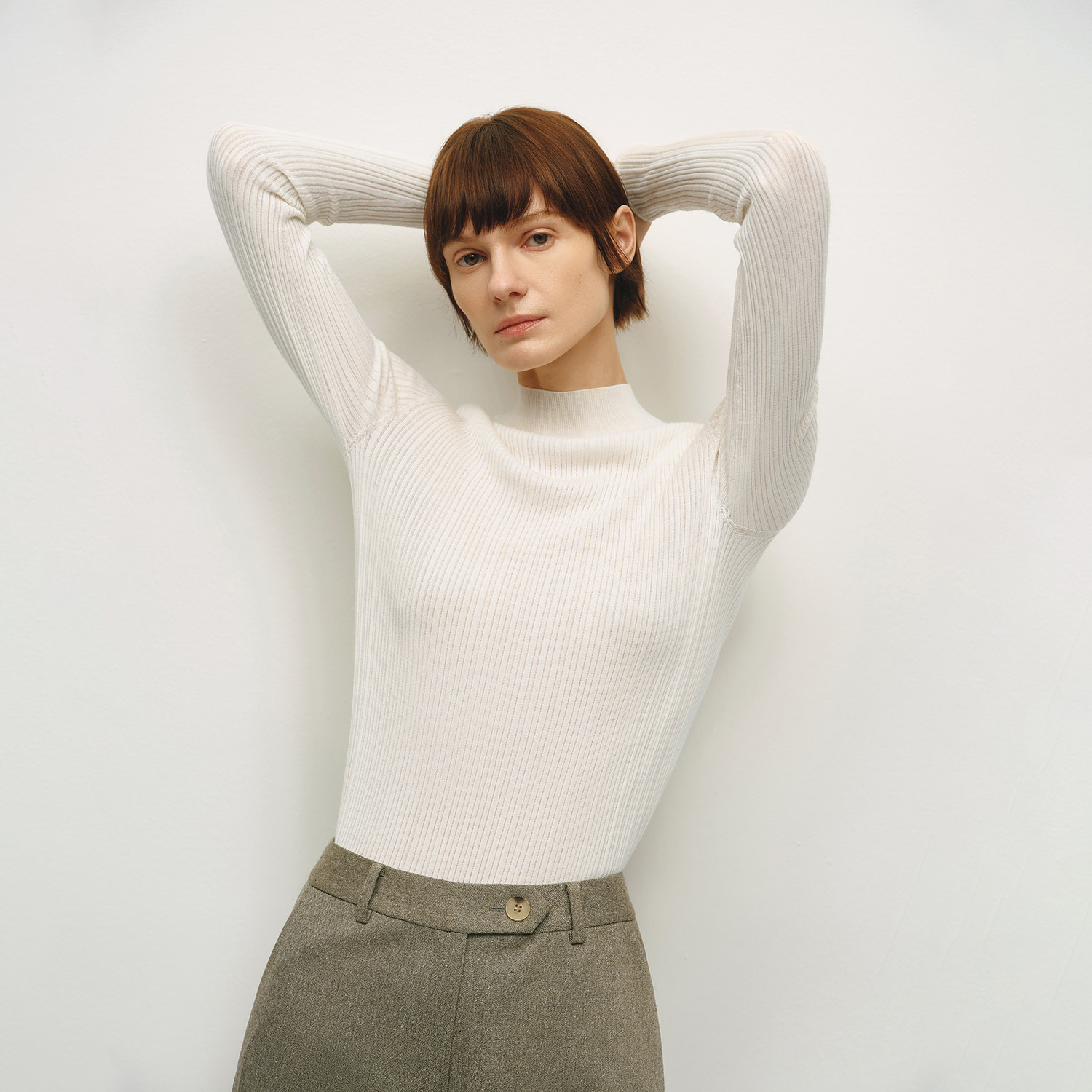 半高领长袖 女无缝坑条经典 OVV春夏热卖 针织衫 黄金羊毛