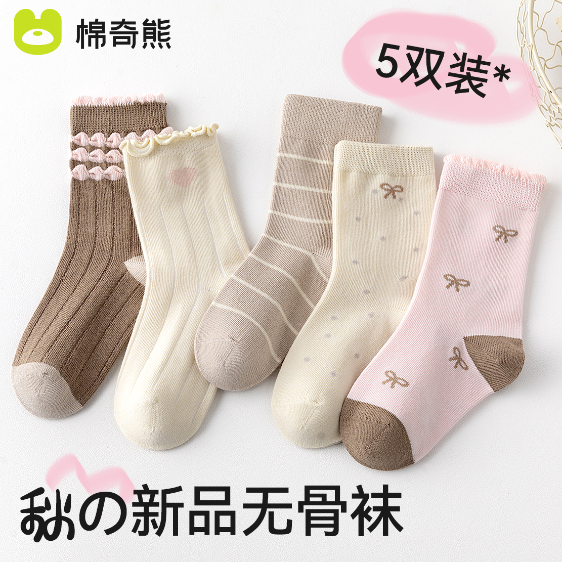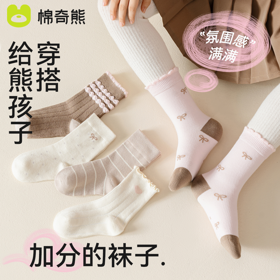 棉奇熊儿童袜子春秋花边公主袜女童中筒袜秋冬棉袜女孩无骨抗起球