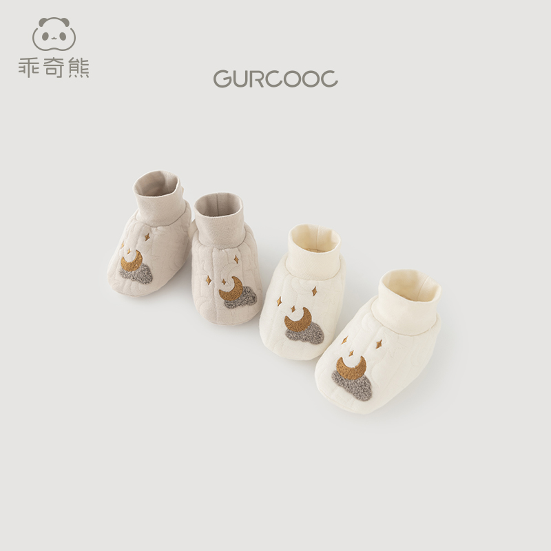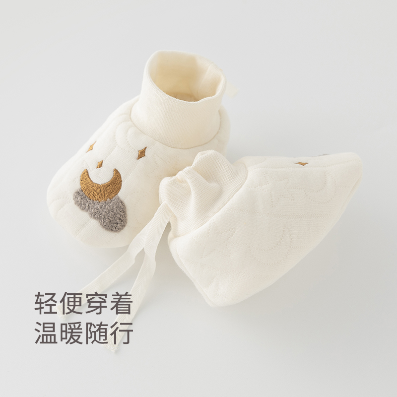 乖奇熊新生儿宝宝夹丝棉护脚套秋冬季 袜 防着凉婴儿保暖神器护脚鞋