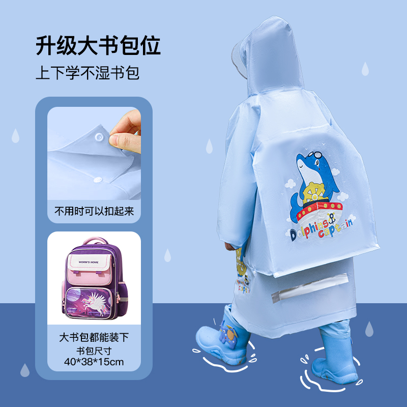 儿童雨衣男童女孩全身防水新款 幼儿园小学生上学专用带书包位雨披