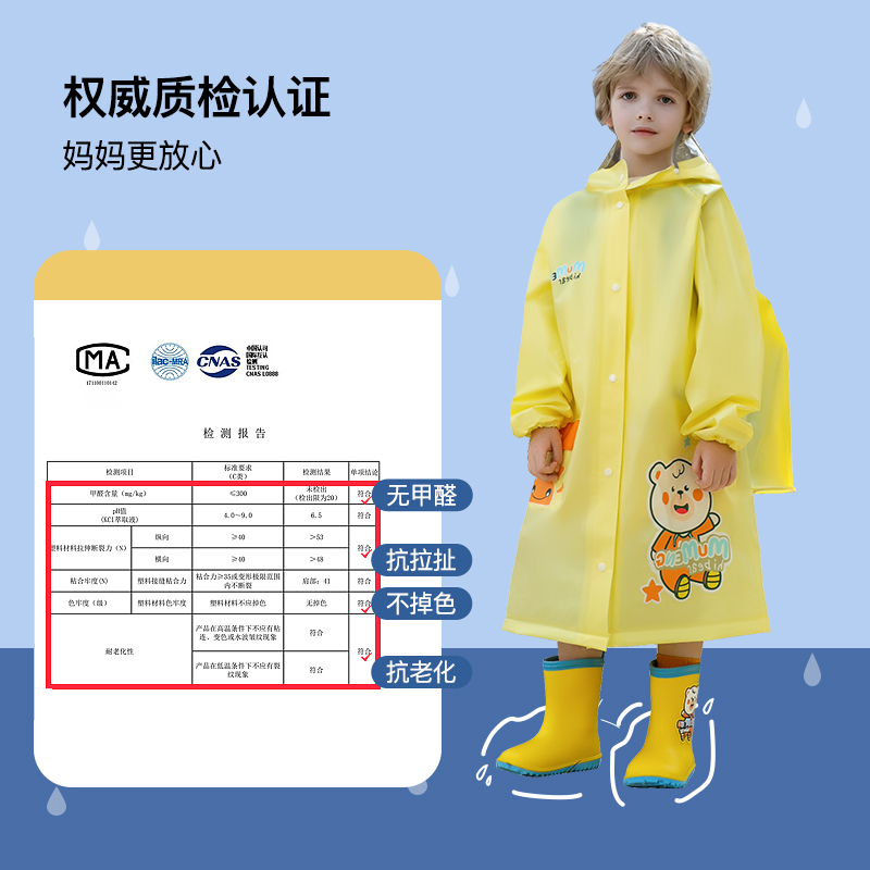 备美儿童雨衣小学生上学专用女孩男童2025新款 防暴雨带书包位雨披
