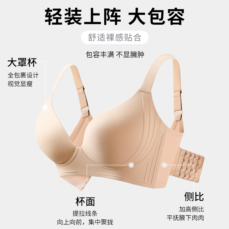 文胸罩 薄款 大码 调整型无痕内衣女大胸显小胸聚拢收副乳防下垂夏季