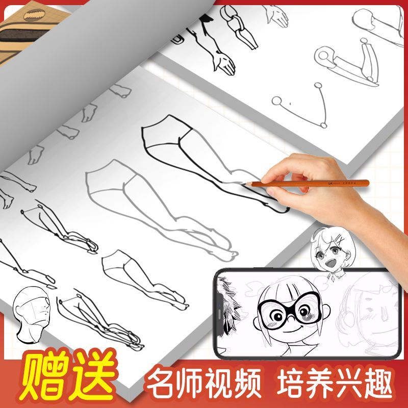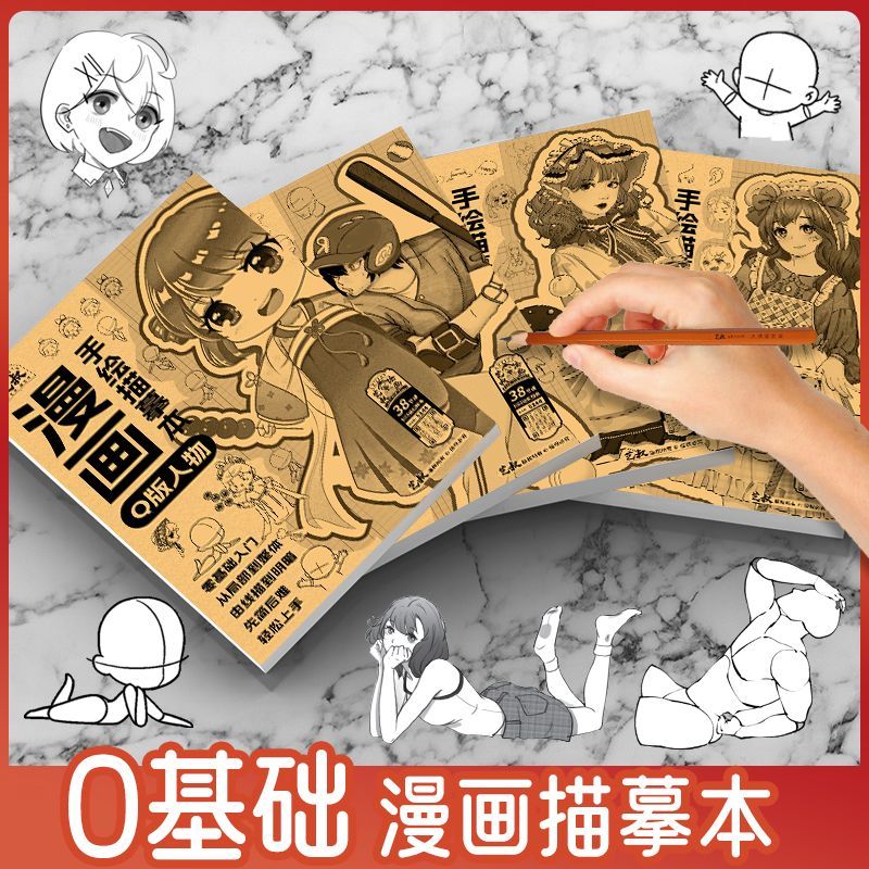 女孩新手零基础入门教程速写练习素描白描画本 麦芽图书漫画手绘描摹本艺叔儿童动漫人物临摹卡通画册美少女古风Q版 非点读版
