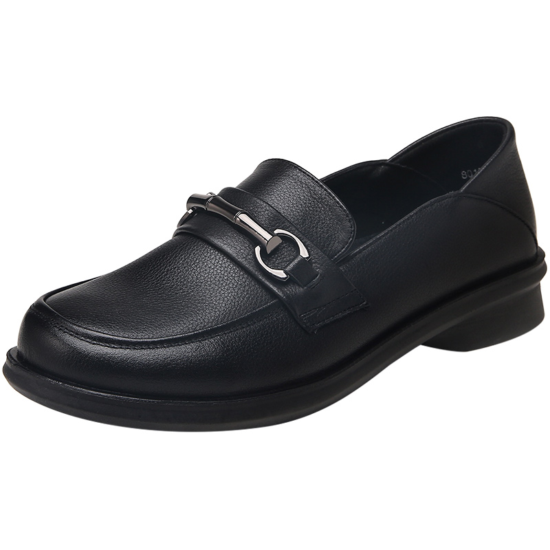 清仓 青年百搭一脚蹬女鞋 旺奈真皮软底乐福鞋 女舒适英伦风妈妈皮鞋