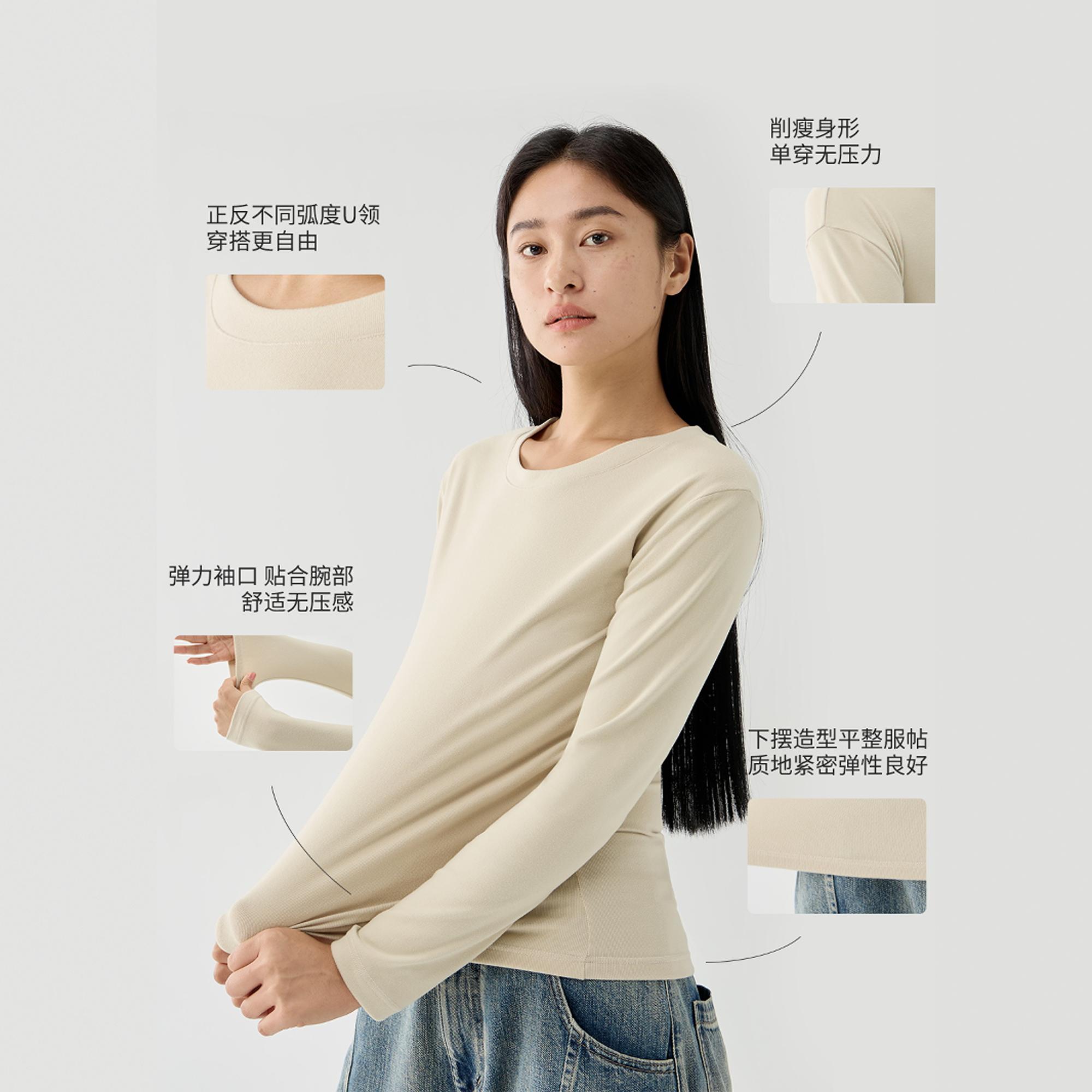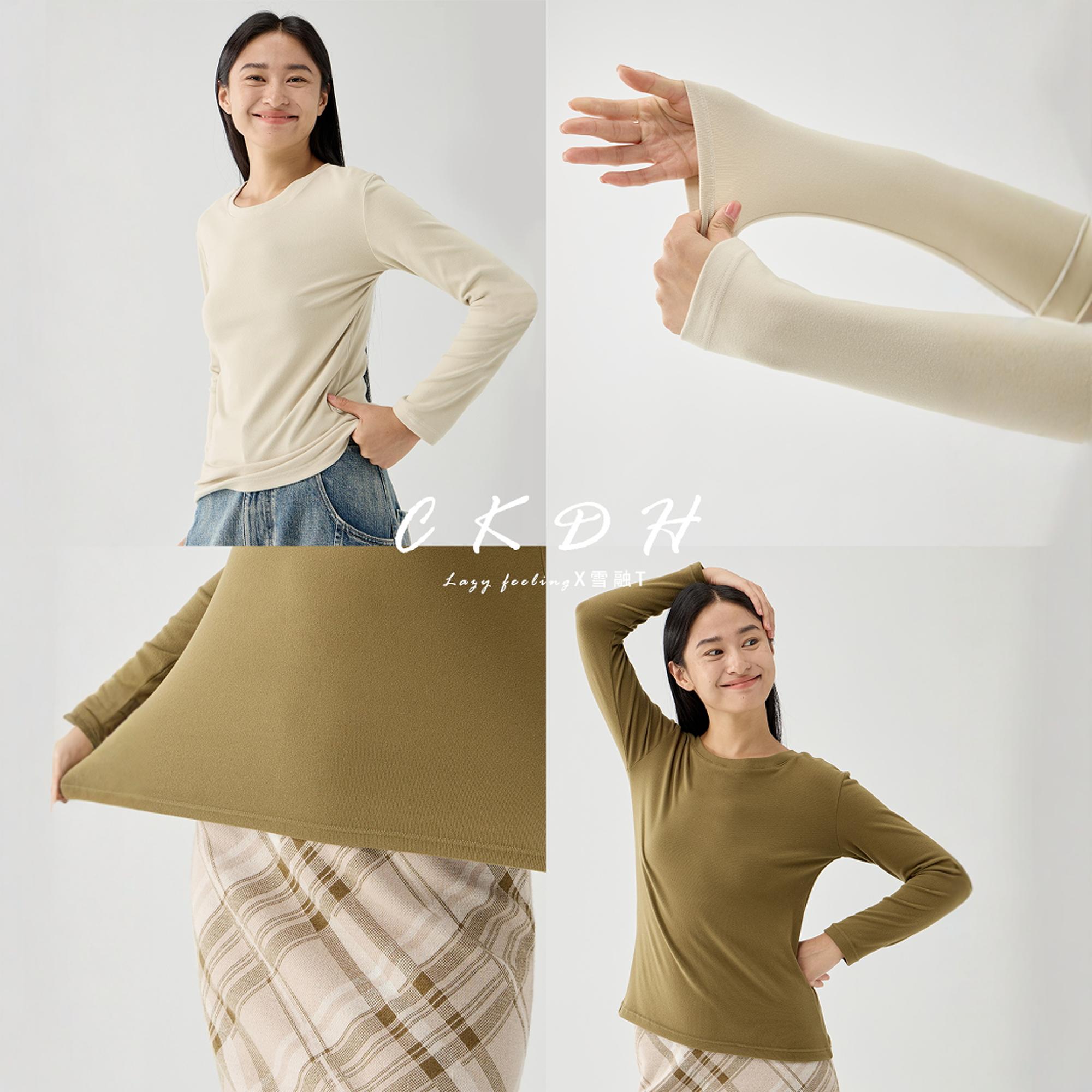 雪绒T内搭纯色上衣秋冬外穿长袖 冬季 t恤 女圆领2025新款 CKDH打底衫