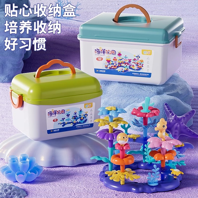 儿童海洋花园积木玩具益智拼装 女孩生日礼物男孩积木拼图3到6岁12