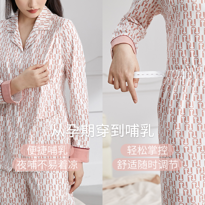 哺乳衣 喂奶月子服产妇产后春夏薄款 秋鹿家居服纯棉睡衣套装 长袖