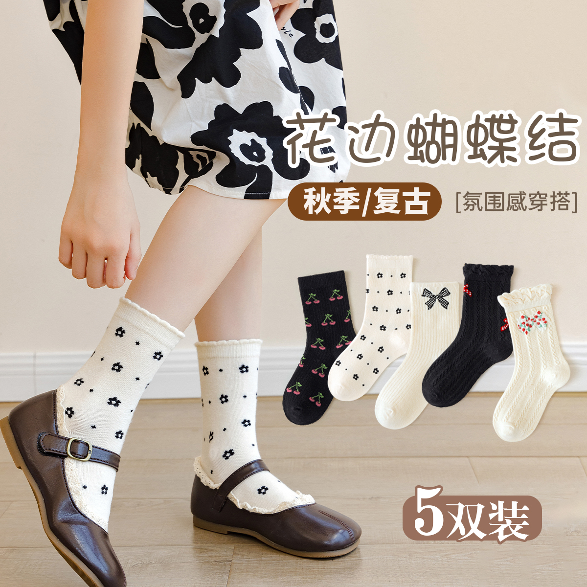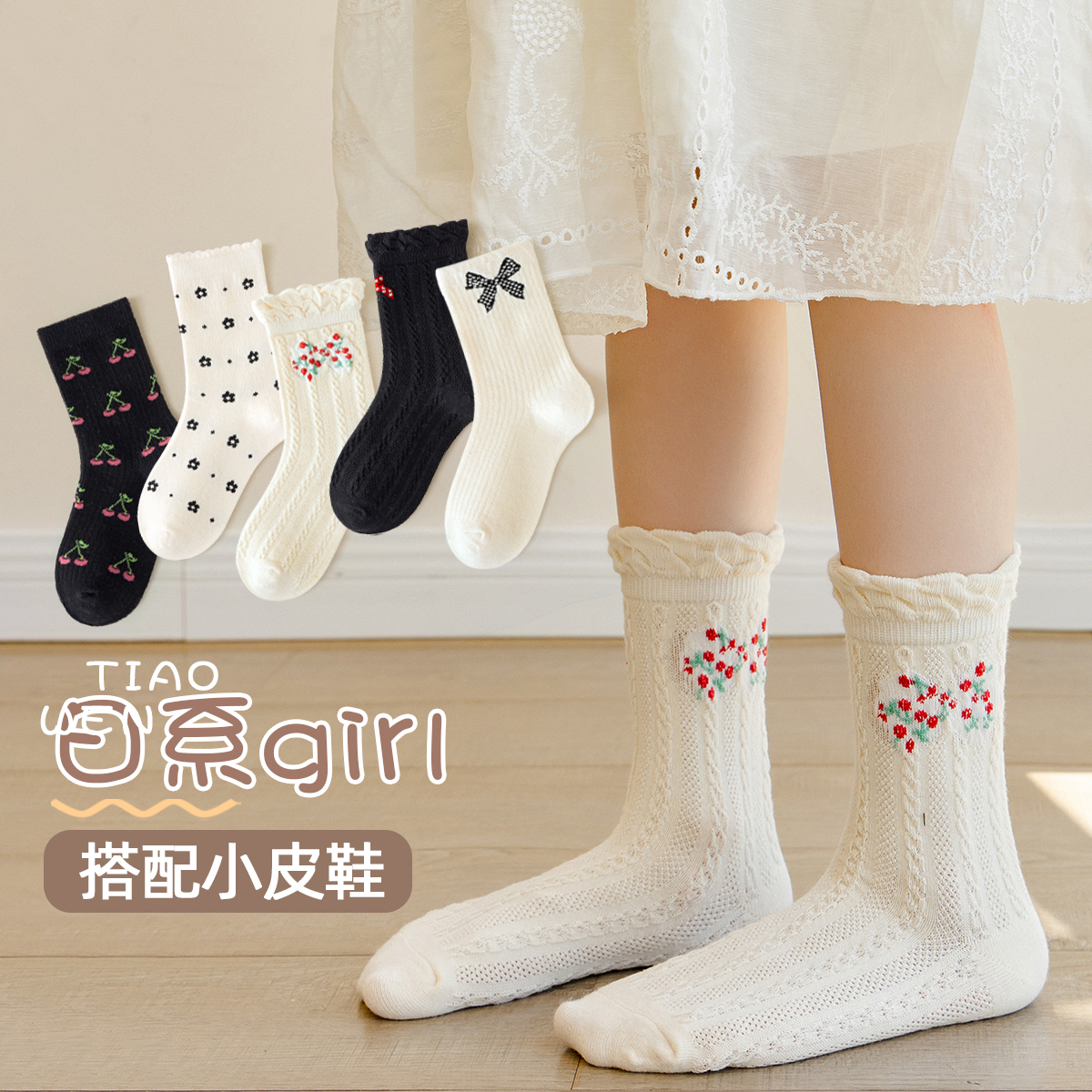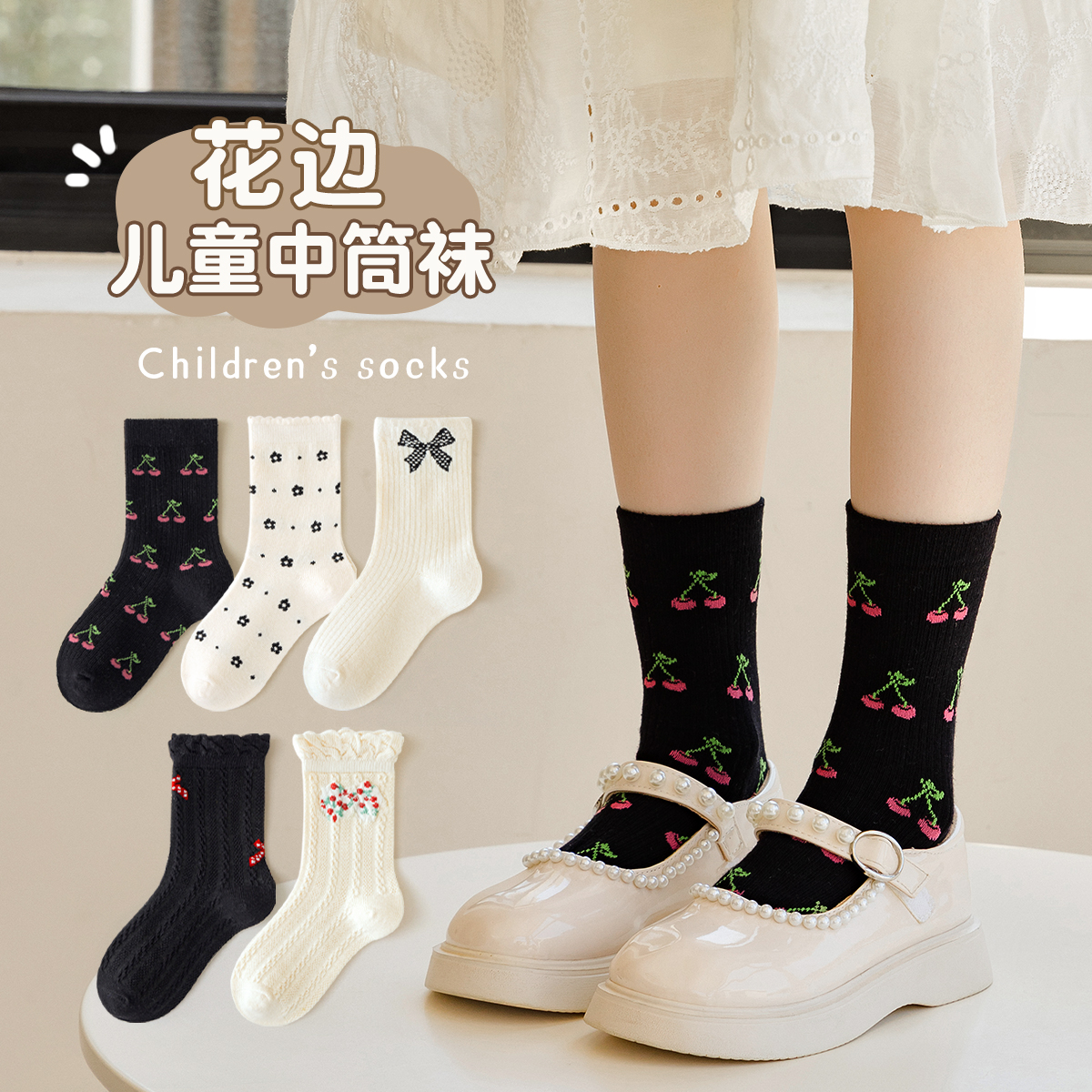 女童袜子纯棉春秋薄款 儿童洛丽塔公主袜可爱女孩中筒学生宝宝花边