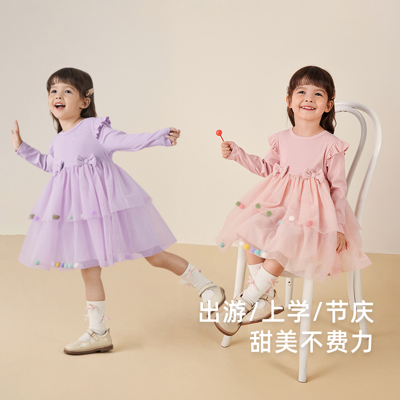 女宝宝公主裙纱裙粉色儿童生日宴礼服裙子 女童连衣裙春秋款 抑菌